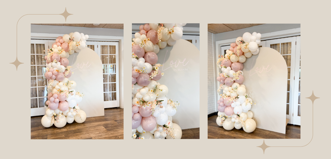 • Custom Balloon Backdrops: Add florals, neon signs, or props to match your theme