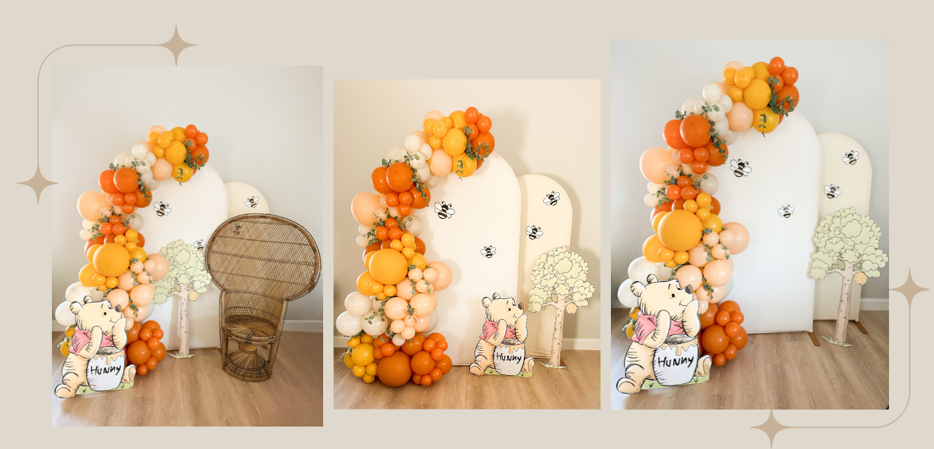• Half-Arch with Balloon Backdrop: The perfect space-saving design